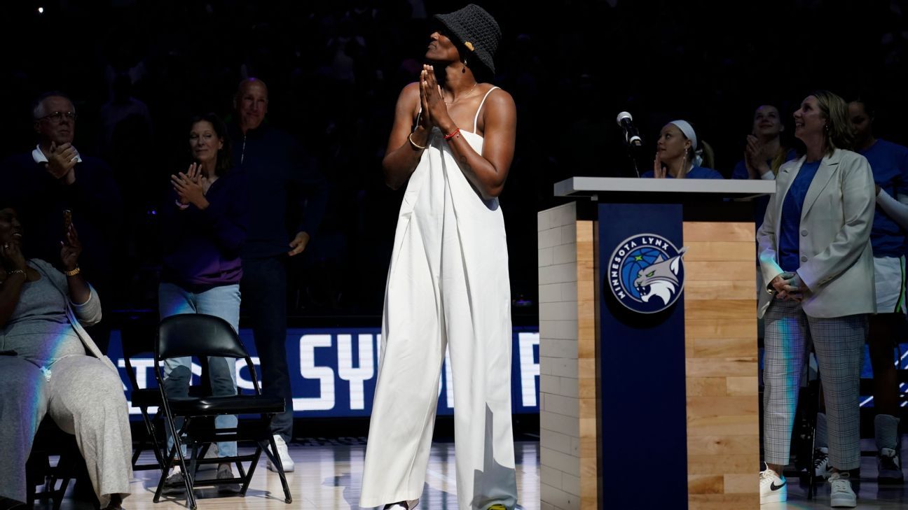 No domingo, os fãs do Lynx – muitos dos quais usavam bandanas Sweet Syl – aplaudiram Fowles durante uma cerimônia de aposentadoria da camisa no Target Center em Minneapolis, que destacou uma das maiores carreiras da história do basquete.